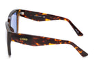 Make your own impact. The Black frame with Smoke Lens is the ultimate in downtown cool—a powerful staple that defines any look with edge. For a more vibrant twist, the Dark Amber Tortoiseshell frame with Blue Lens offers a striking, artistic contrast, blending vintage warmth with contemporary electric energy.